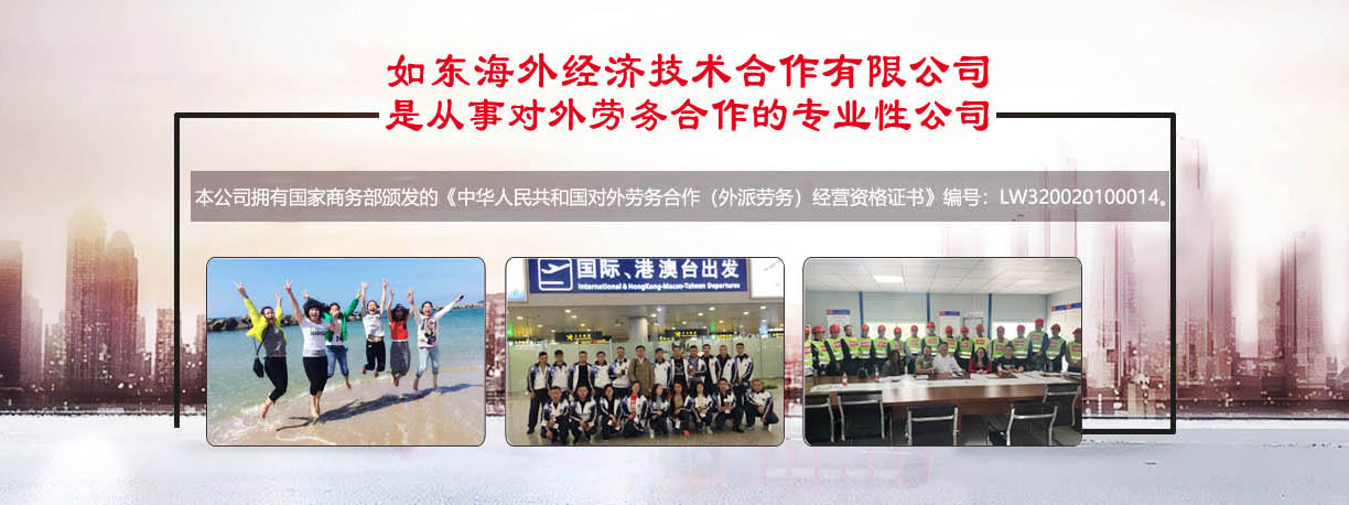 是從事對外勞務(wù)合作的專業(yè)性公司,本公司擁有國家商務(wù)部頒發(fā)的《中華人民共和國對外勞務(wù)合作(外派勞務(wù))經(jīng)營資格證書》編號:LW320020100014。從一九九五年開展勞務(wù)合作以來,積極開拓進取,先后向日本、加拿大、新加坡、韓國等國家派遣勞務(wù)人員近1萬5千余人。勞務(wù)合作行業(yè)主要有服裝(車工、裁剪、整燙、制板、維修、車間管理)、針織業(yè)(織布、漂染、針織、橫機、套口羊毛衫工)、建筑工程(技術(shù)人員、瓦工、鋼筋工、拌灰工、木工、油漆工、電工、鋁合金工、水暖工等)、機械工(銑床、車床、沖床、鉆床、鑄造等)電焊工(壓力容器、亞弧焊、建筑設(shè)備安裝、船舶、管道工)、遠洋捕撈(職務(wù)船員、普通漁工、水手),高級廚師(川菜、粵菜、京菜、淮揚菜)、電子裝配、園藝、蔬菜種植、桑蠶飼養(yǎng)、海、淡水養(yǎng)殖、護士、翻譯(英語、日語、韓國)等,日本辦事處設(shè)在日本東京、廣島主要負責(zé)管理和服務(wù)日本研修生及貿(mào)易方面的聯(lián)絡(luò)工作,國外辦事處和中國公司現(xiàn)有工作人員25人,專職勞務(wù)工作人員10人,從事勞務(wù)行業(yè)均10年以上,翻譯、培訓(xùn)教師5人,外教2人,會計3人,業(yè)務(wù)人員5人。